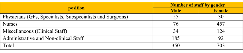 The hospital is staffed by 1,000 individuals, including GPs and specialists as well as registered, contractual, apprenticeship and provisional workforce. The average bed occupancy rate is 70%.
